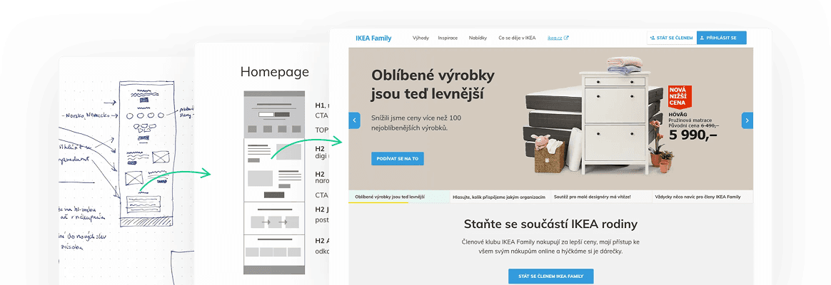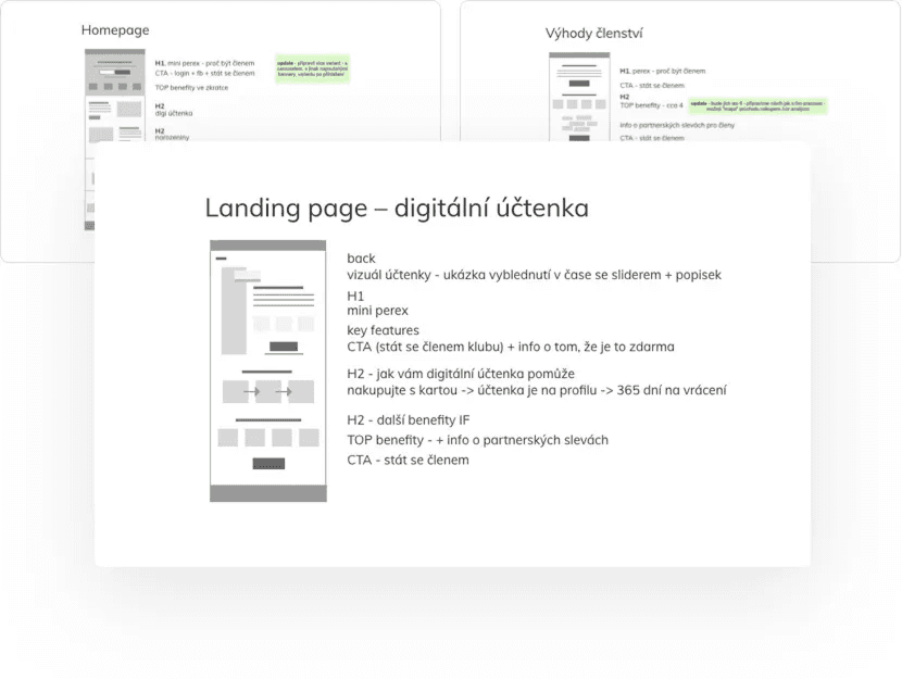 UX analýza webu, Guerilla testování, Rozhovory s klienty, Návrh nového webu, Copy