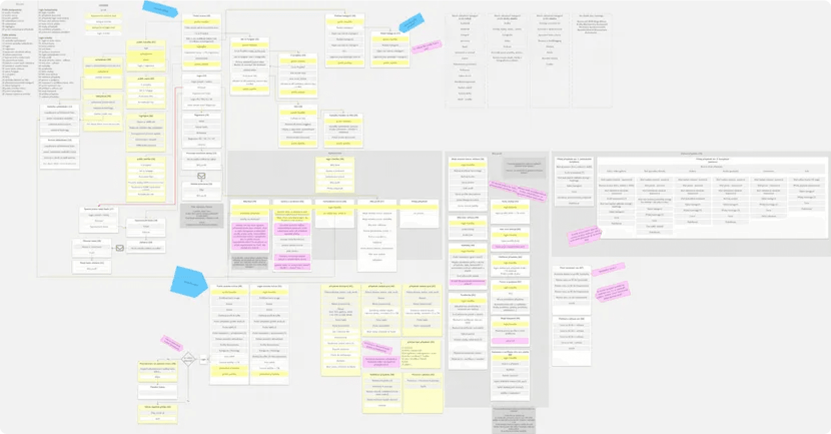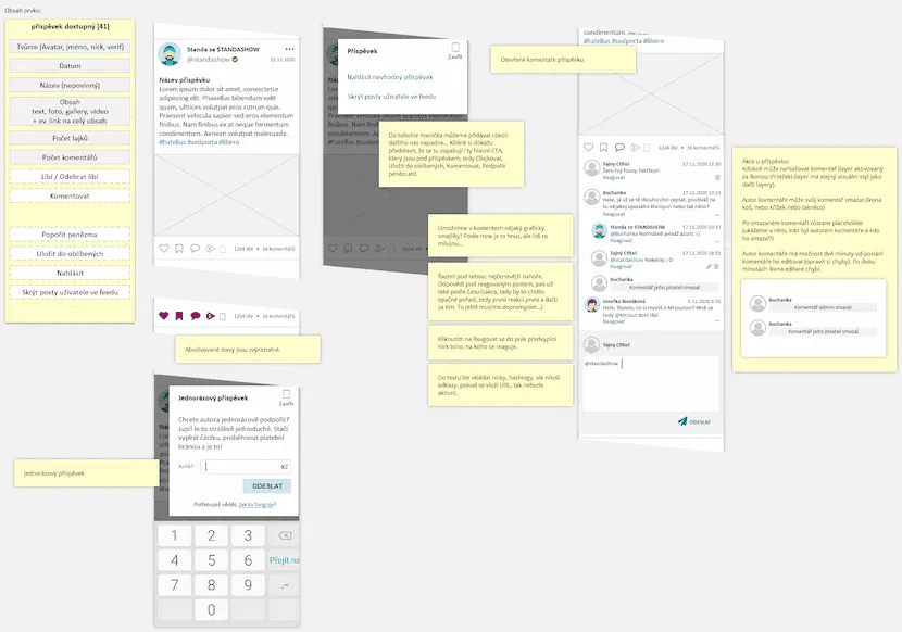 Úvodní námluvy nějakou chvíli trvaly, protože jsme hledali vhodnou formu spolupráce a financování našich prací na takovém start-upu rostoucímu na zelené louce. Projektu jsme ale od začátku hodně věřili. Dokonce i Michal, který umí být občas pěkný skeptik, se pro celý nápad nadchl. Nejdříve bylo nutné udělat velkou analýzu podobných a konkurenčních platforem jako třeba Patreon a Onlyfans. Zjistit, v čem je možné se inspirovat, co posunout dál, čeho se rozhodně vyvarovat. Výstupem podrobného mapování zamýšlených funkcí bylo velké procesní a funkční schéma, na kterém jsme si společně odladili celé uživatelské flow. Jeho přípravě jsme věnovali docela dost času. A vyplatilo se to. V realizaci jsme se pak museli jen minimálně odchýlit od plánů. A po spuštění úvodní MVP fáze se velmi rychle přešlo na plánovaný provoz