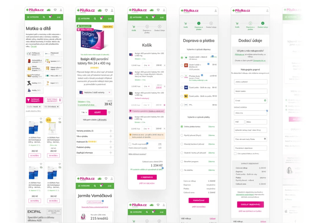Ukázka mobilních stránek z našeho responsivního prototypu pro Pilulku.